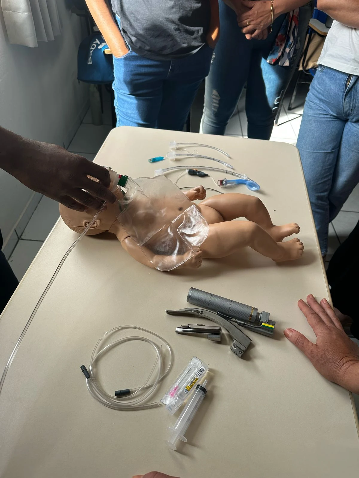 Durante dois dias, os participantes viram como fazer o reconhecimento de paciente grave e como proceder em caso de desidratação, aspiração de corpo estranho, anafilaxia, hipoglicemia, asma grave, parada cardiorrespiratória, mal convulsivo e sepse/choque séptico, além de sequência rápida de intubação.